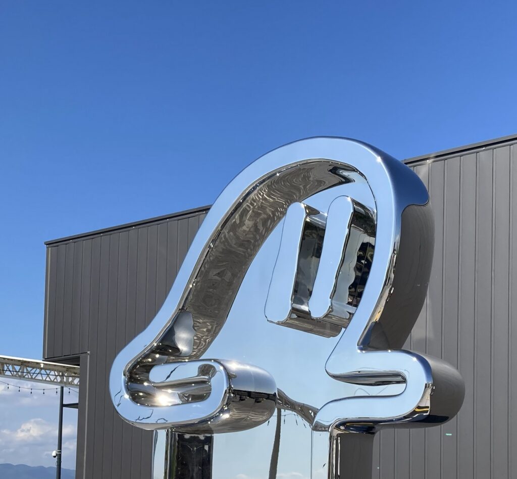 そんな声が聞こえてきそうだが、実は彫刻の下半分もちゃんと写していたのである。しかし、斜めから写真を撮ったことによって、意図せず他の来場者が鏡面に映り込んでしまったのだ。肖像権的な観点からそのまま貼ることはできず、上半分のみとなった次第である。